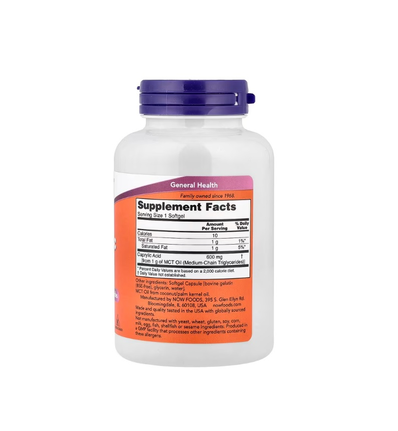 Caprylic Acid 600mg 100 capsule moi - NOW Foods